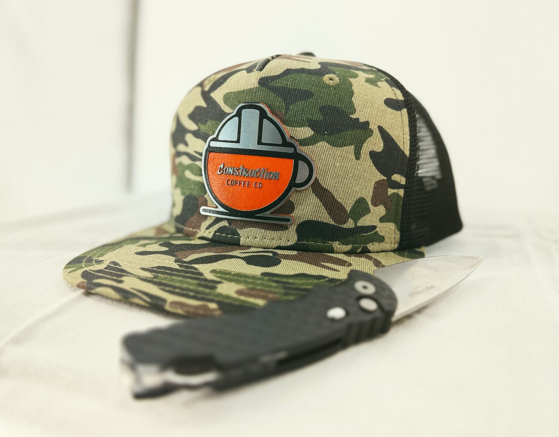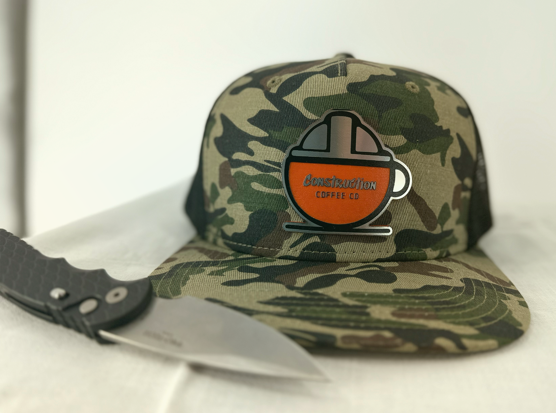 This flat bill features our iconic Hard Hat Mug logo in a clean-cut Acrylic patch